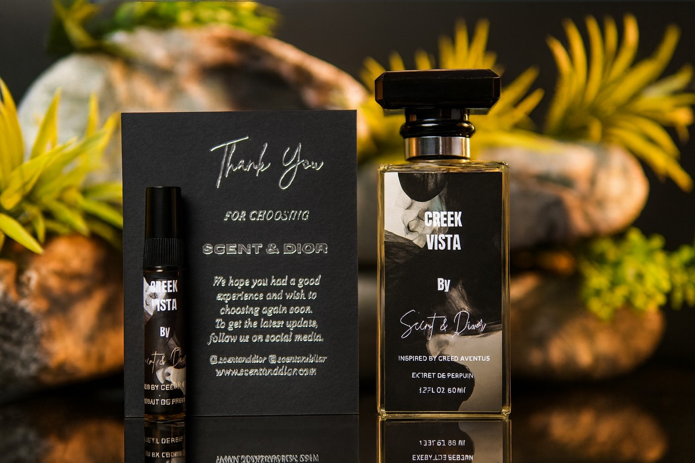 "Creek Vista by Scent & Dior Extrait De Perfum, inspired by Creed Aventus, is a popular and iconic fragrance for men.